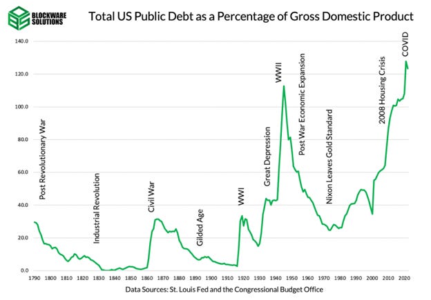 Es importante recordar que nuestro sistema económico y monetario ha sido construido en la base de creación de crédito desde que Nixon elimino el Gold Standard en el 1971. Hoy día, la mayoría de la riqueza de los estadounidenses no existe en la forma de una moneda física, bienes inmobiliarios, oro, acciones o Bitcoin, existe como crédito. Vivimos en un sistema FIAT que premia a los que toman deudas para convertirlos en bienes tangibles.
