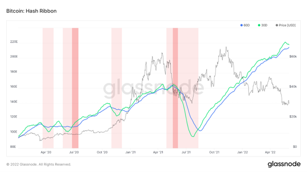 - La métrica de los Hash Ribbons esta cerca de cruzar, lo que indicaría la fase inicial de capitulación por parte de los mineros.