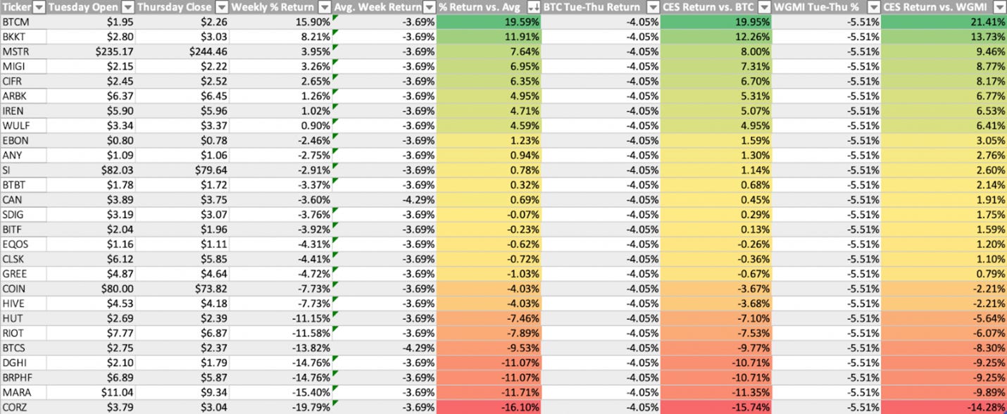 En cuanto a precios, cabe destacar a : CIFT, BTCM, BKKT, MOGO, CAN, SDIG y MSTR.