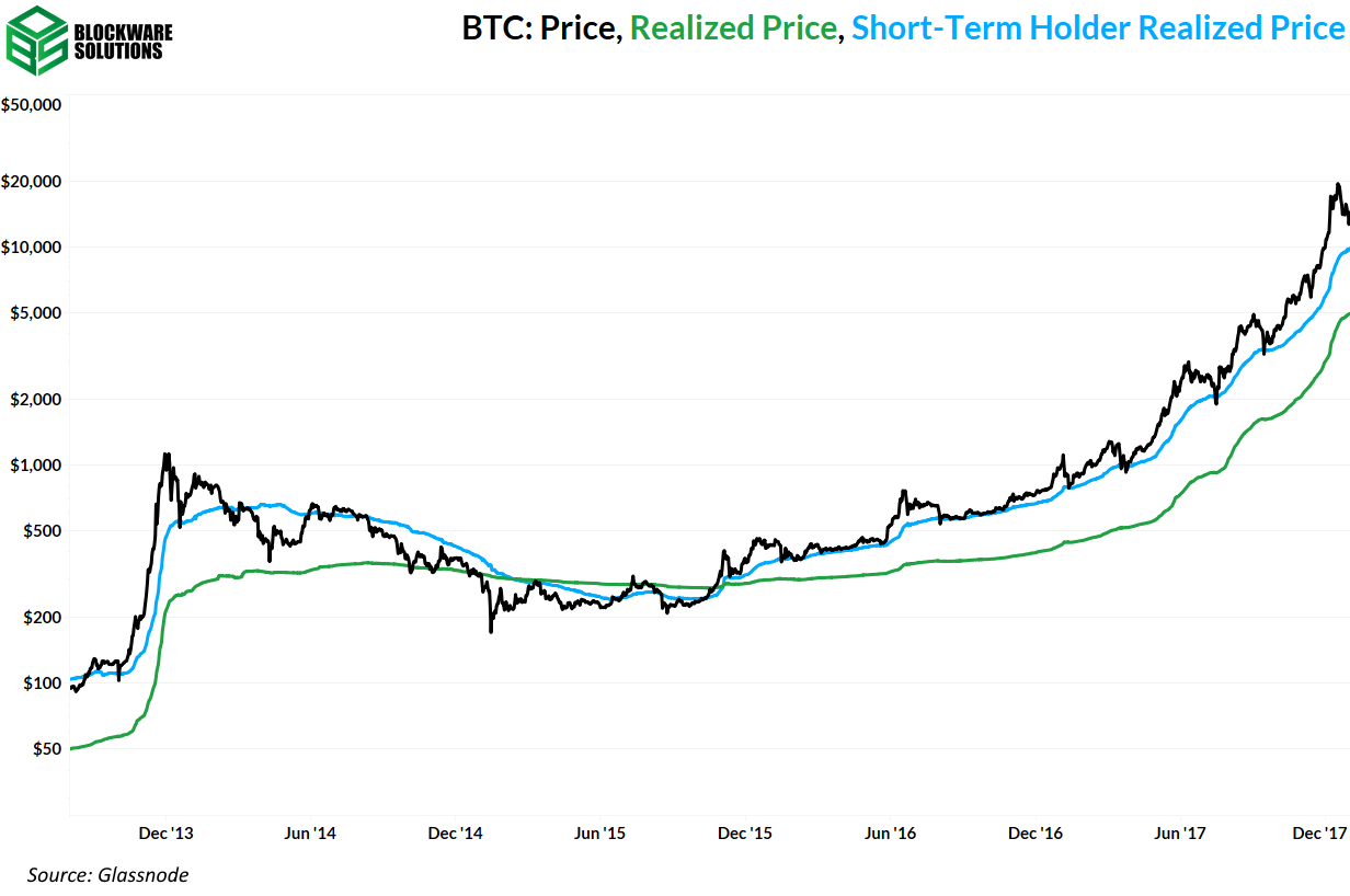 Acercarse para ver las métricas de base de costo de los mercados bajistas anteriores muestra que el mercado bajista de 2015 tuvo un poco de "falsificación" donde el precio rompió STH RP temporalmente antes de caer nuevamente. Esta es la razón por la que todavía no es seguro decir que se ha tocado fondo, pero un avance sostenido de RP sería un punto en el que podríamos llamarlo con confianza.