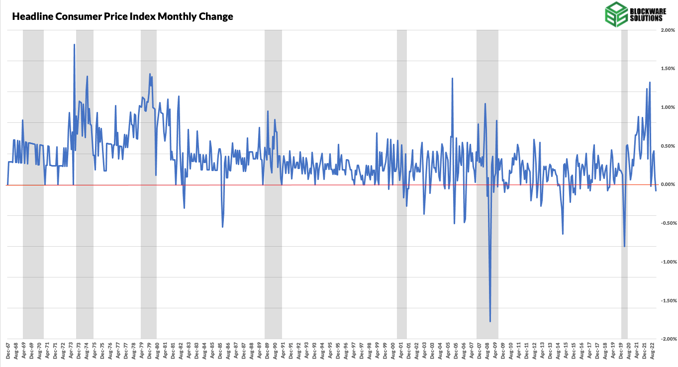 Un mes de crecimiento negativo del IPC no significa que realmente estemos en un entorno desinflacionario, pero con el tiempo, si la inflación del IPC continúa cayendo, podríamos ver que la desinflación marca el comienzo de un período de recesión en EE. UU.