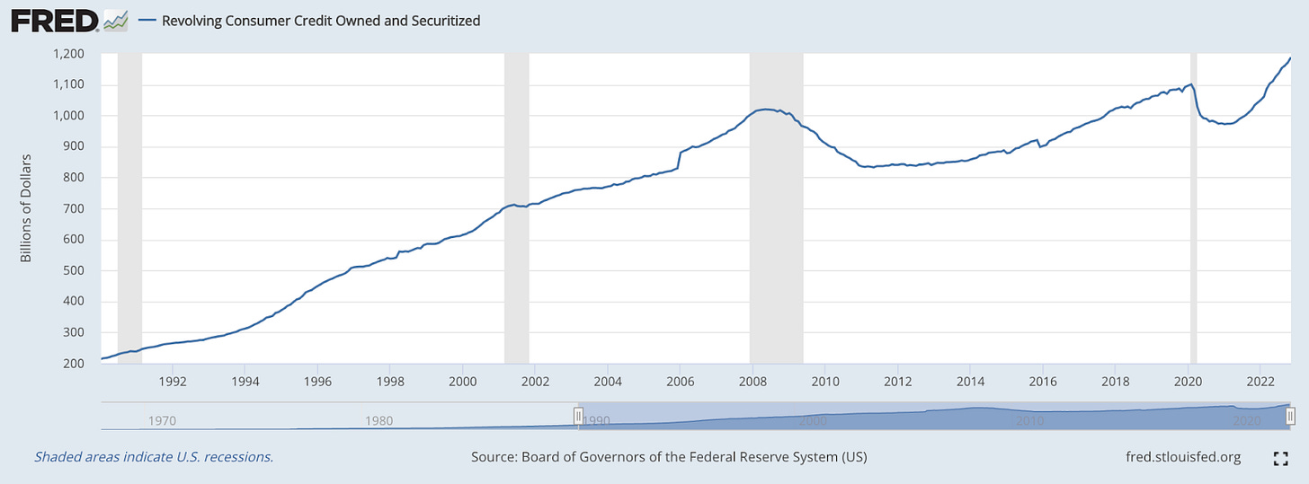 Aunque el crédito rotativo de consumo tiene un nombre elegante, la gran mayoría de esta deuda son los saldos de las tarjetas de crédito de los estadounidenses comunes. Con una de las formas más comunes de deuda que sigue creciendo junto con los altos salarios y el empleo, puede crear un incentivo para que la Fed continúe ajustando más de lo esperado.
