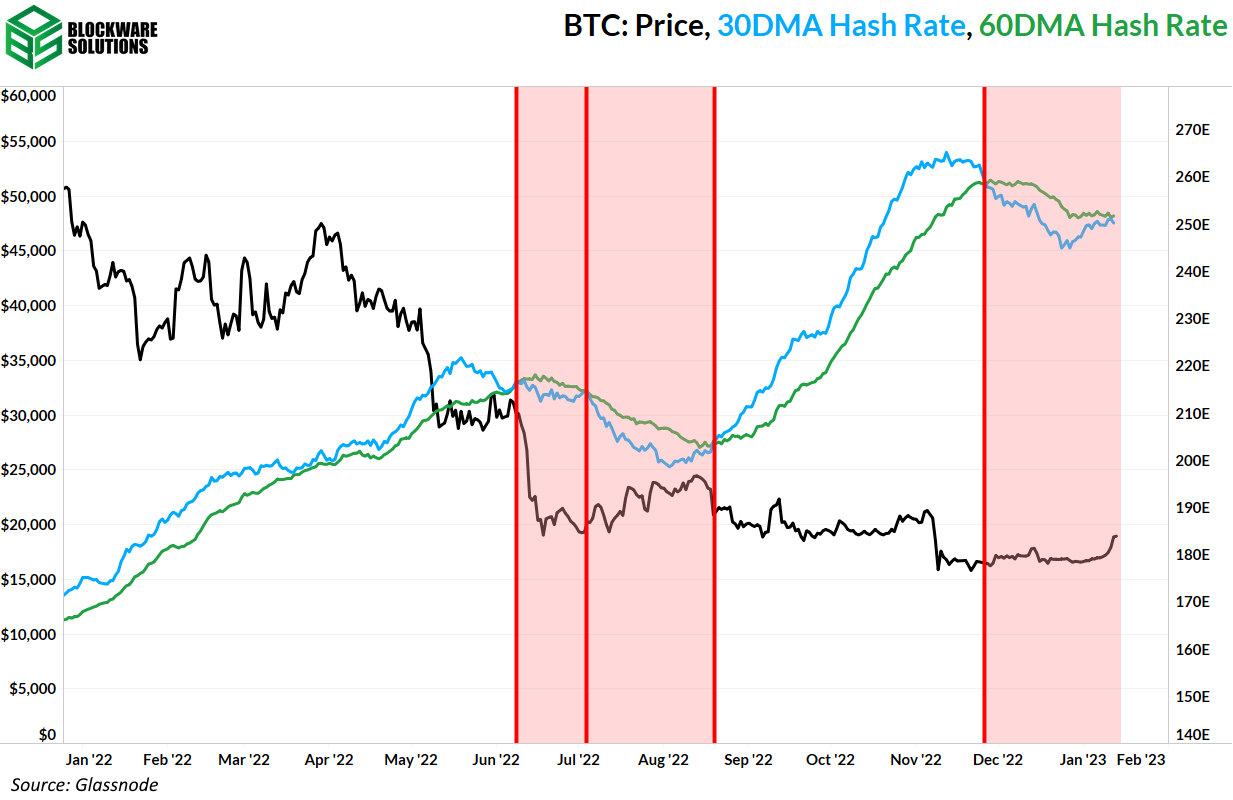A partir del 12 de enero a las 8 p.m. EST, la capitulación minera más reciente que comenzó en noviembre de 2022 casi ha terminado. Históricamente, el final de una capitulación minera marca el comienzo potencial de una nueva carrera alcista.