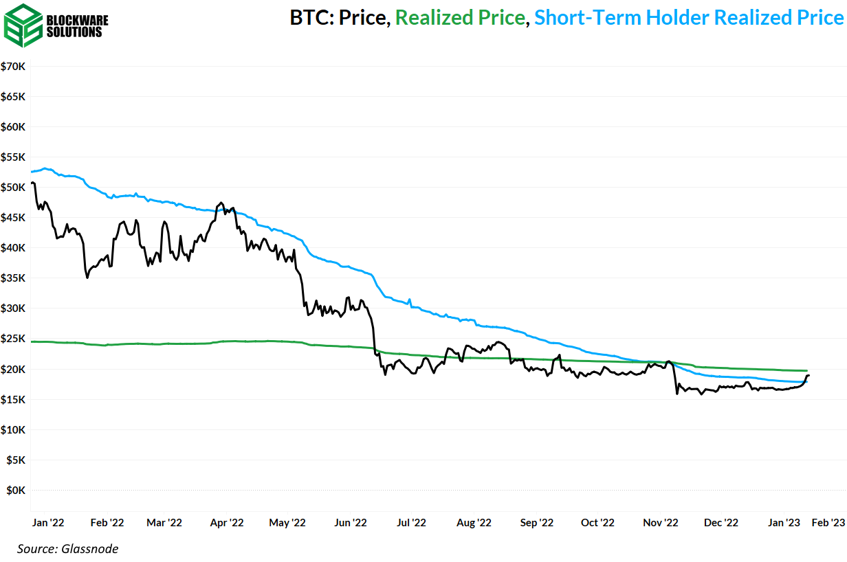 Bitcoin ha superado un nivel de resistencia clave: precio realizado por el titular a corto plazo. Los casos anteriores de ruptura de esta resistencia han señalado el final del mercado bajista.